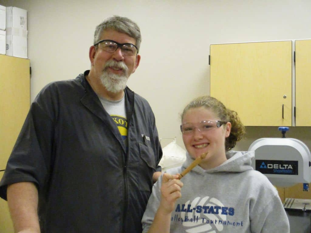 In this outreach program, we work with woodshop and industrial arts teachers of Bismarck & Mandan middle schools to give students a hands on woodturning experience with a lathe. The students are given guidance and training. By the end of the session, they leave with a completed project.